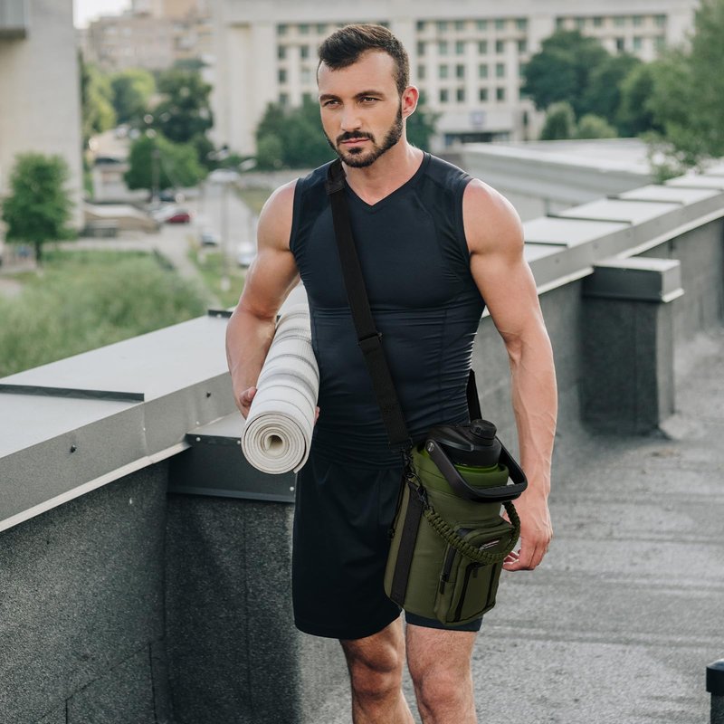 - 【FITS THE 128 OZ WATER BOTTLE JUG】- Our water bottle carrier is suitable for the most 128 oz water bottles jug from common brands. (length: 10.23 inches, Diameter: 6.7inches). This water bottle sleeves bag great for glass bottle, Insulated stainless steel and plastic bottles, Tumbler, sport and energy drinks. The water bottle carrier bag will keep the temperature of drinking also avoid to burn your hand.