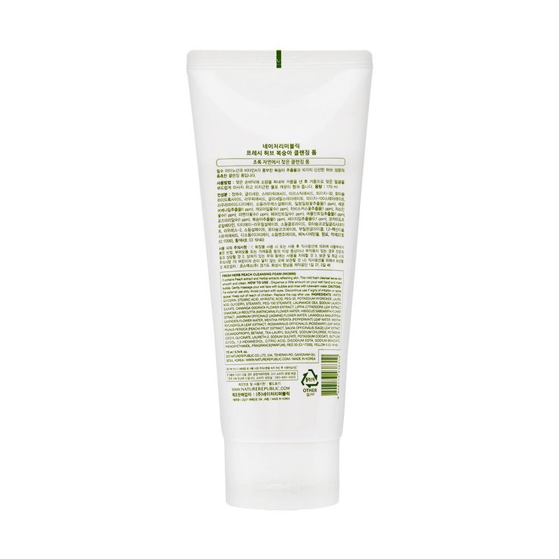 Nature Republic Fresh Herb Cleansing Foam, Peach, 5.74 fl oz (170 ml)