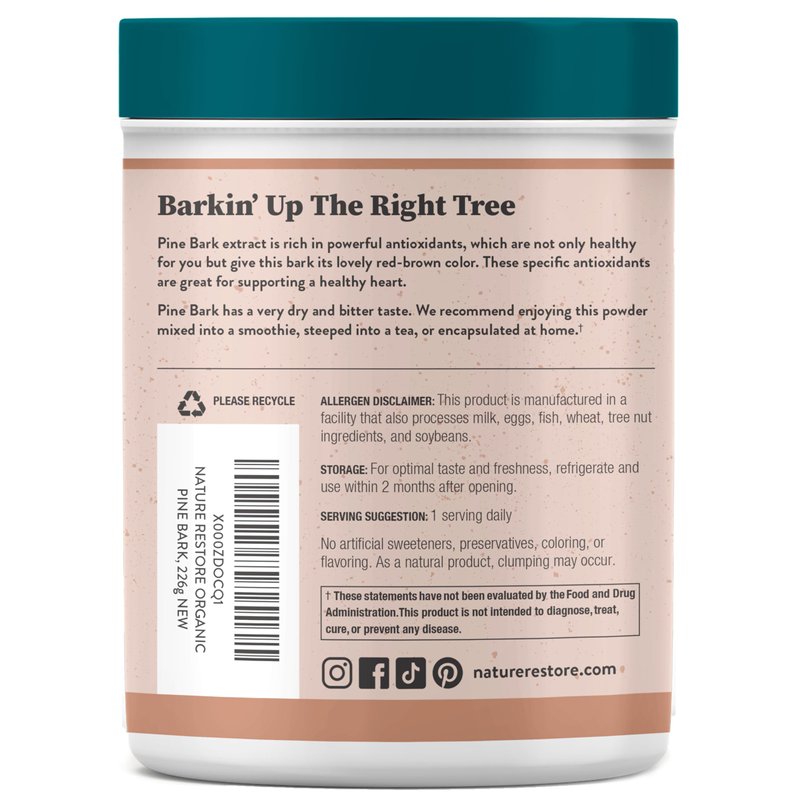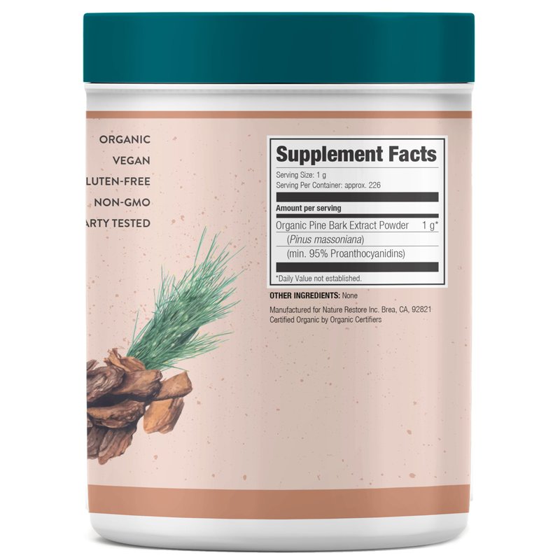Nature Restore USDA Certified Organic Pine Bark Extract Powder, 8 ounces/226 Grams, Standardized to 95 Percent Proanthocyanidins, Vegan, Gluten Free, Non GMO