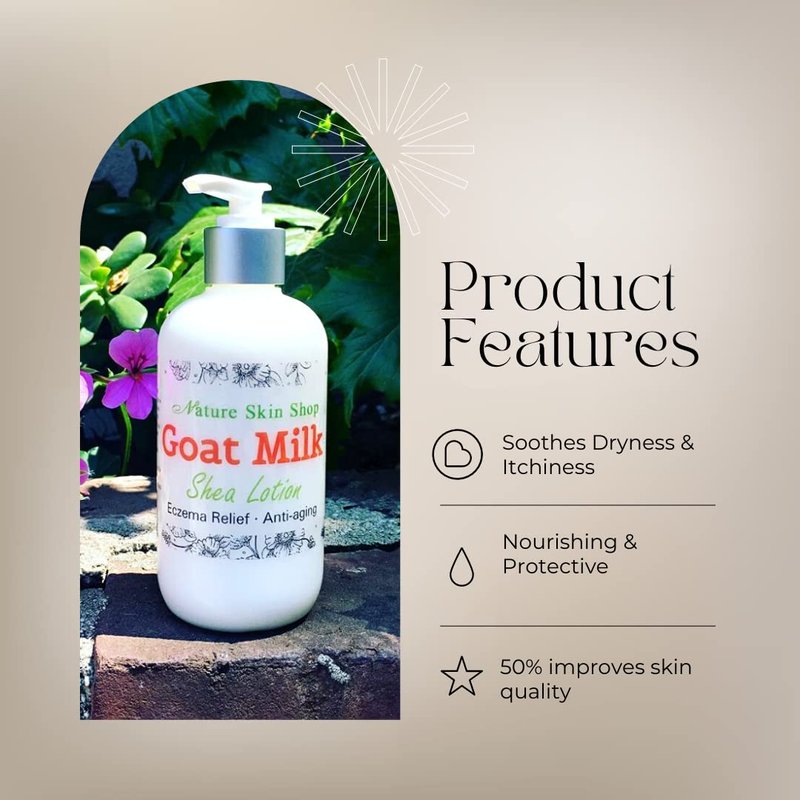 Nature Skin Shop Goat Milk Shea Body Lotion, Eczema Relief and Anti-aging (Unscented)