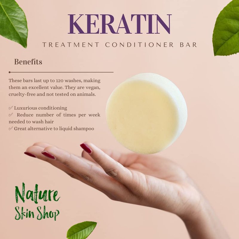 Nature Skin Shop Keratin Treatment Conditioner Bar, Intense Hair Solid Conditioner, All Hair Types including frizzy hair, Sulfate-Free, Vegan, Cruelty-Free & Travel Friendly, 4 Ounces