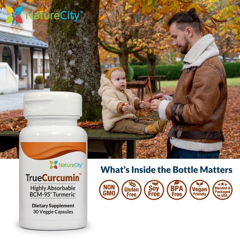 NatureCity True-Curcumin Turmeric Supplement | Non-GMO Tumeric and Curcumin 500mg Curcuma Capsules Vitamin Supplements | Up to 700% Increase in Absorption (90 Day Supply) | Supports Joints