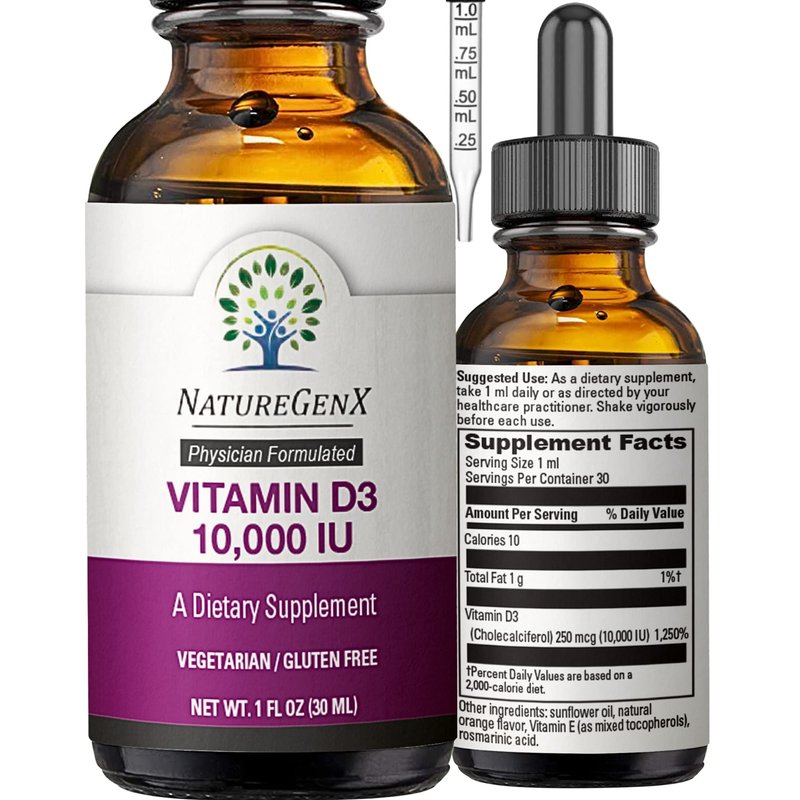 - IMMUNE SYSTEM VITALITY: NatureGenX Liquid Vitamin D, with 10000 IU potency, fortifies your immune system. Derived from sunlight or diet, Vitamin D3 is crucial for calcium metabolism, supporting overall health.