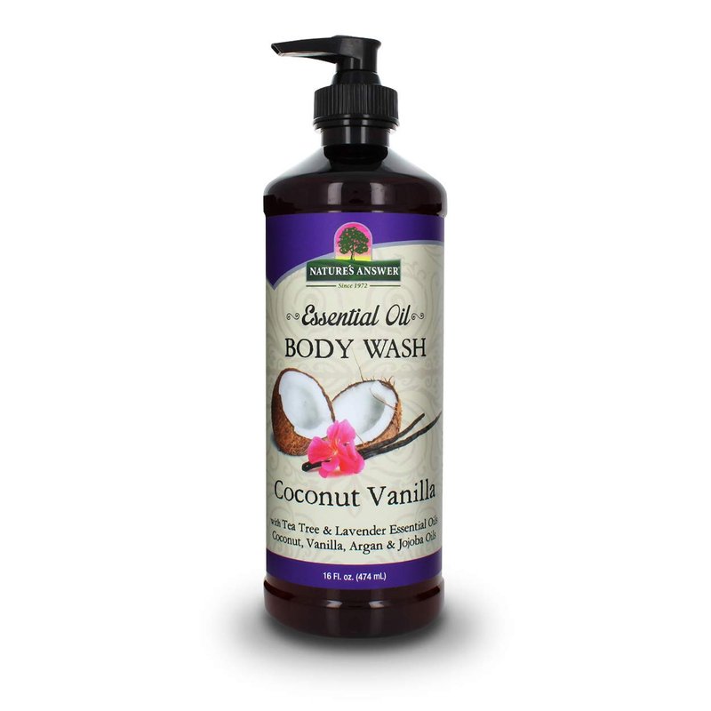 - Nature’s Answer Coconut Vanilla Body Wash is made with an extraordinary blend of natural essential oils and botanicals to pamper even the most gentle skin. It’s formulated to gently cleanse, remove excess oils, environmental pollutants and dead skin residues without over-drying.