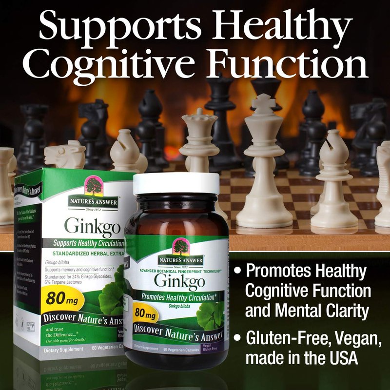 Nature's Answer Ginkgo Biloba Herbal Supplement Vegetarian Capsules, 60-Count | Promotes Cognitive Function | Mental Clarity | Natural Energy Booster