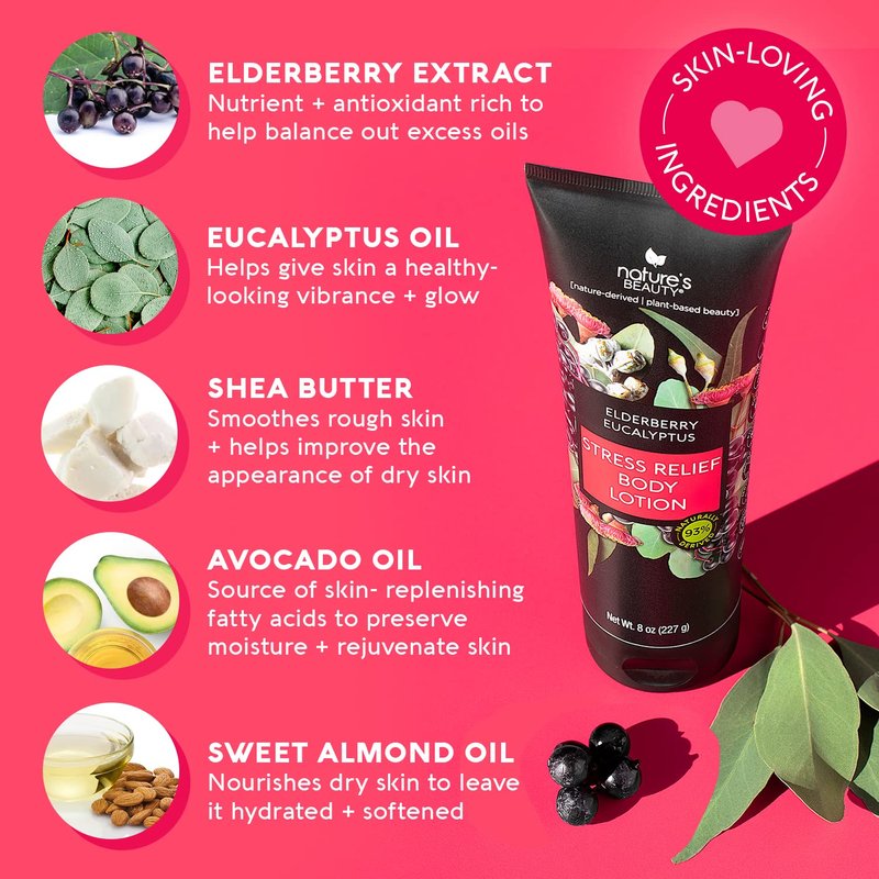 Nature’s Beauty Stress Relief Body Lotion | Clear Your Mind and Soothe Your Skin with Elderberry Eucalyptus Moisturizer Made with Shea Butter, Avocado + Sweet Almond Oils - 2-pack