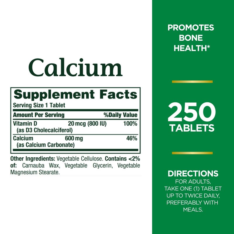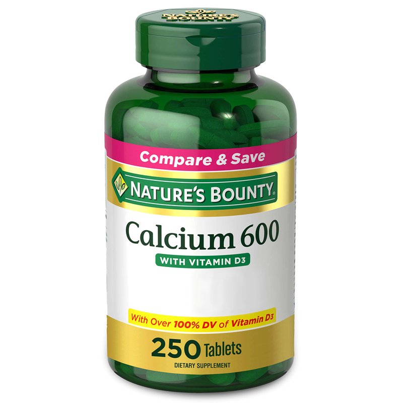 Nature's Bounty Calcium Carbonate & Vitamin D, Supports Immune Health & Bone Health, 600mg Calcium & 800IU Vitamin D3, 250 Tablets