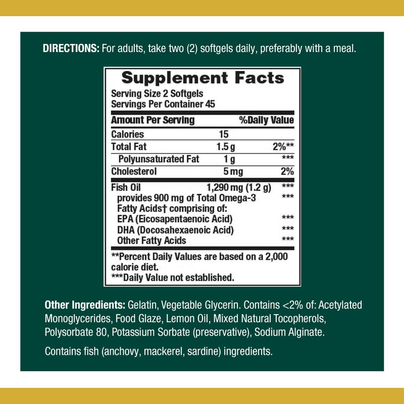 Nature’s Bounty Mini Fish Oil, 1290mg, 900mg of Omega-3, 90 Softgels