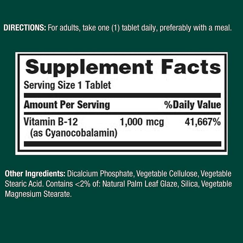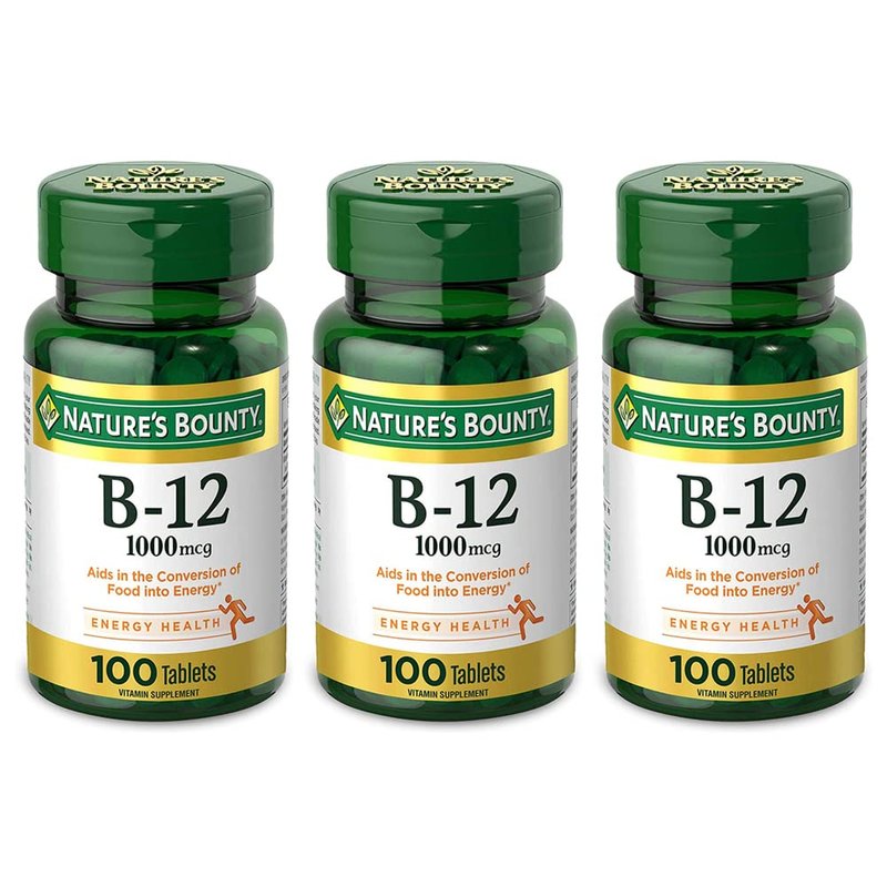 Nature's Bounty Natural Vitamin B12, 1000mcg Tablets, 100 Count, Pack of 3
