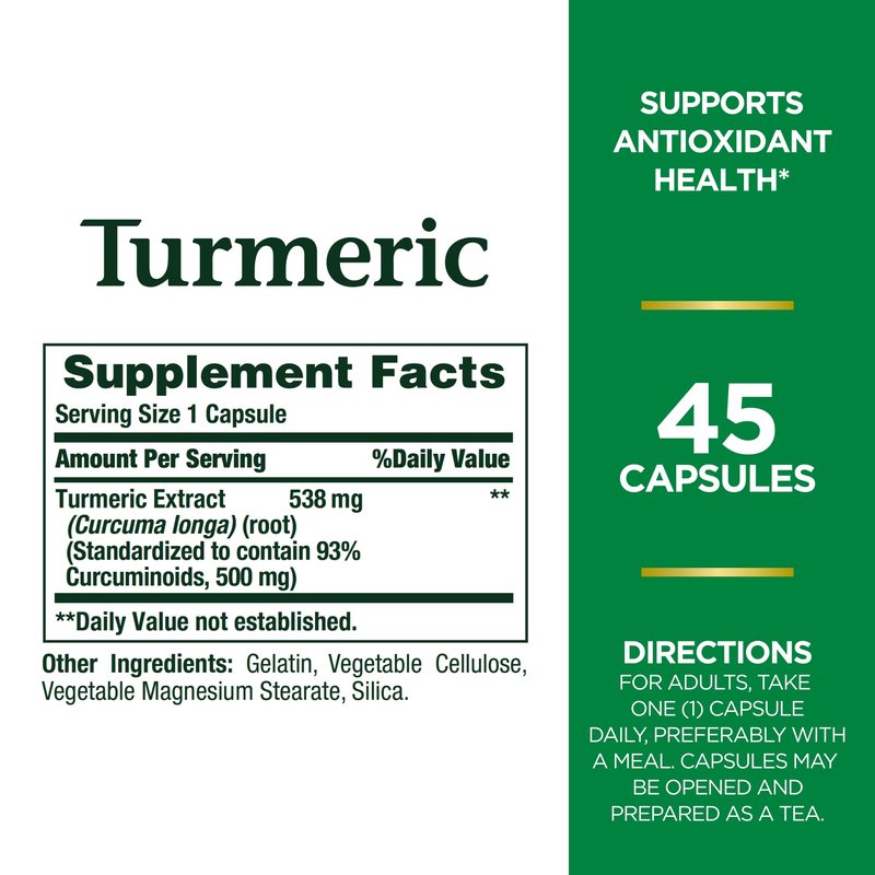 Nature's Bounty Turmeric Pills and Herbal Health Supplement, Antioxidant Health, 538mg, 45 Capsules
