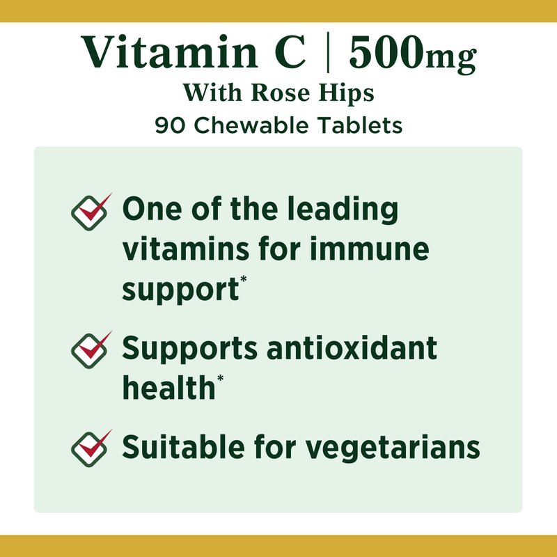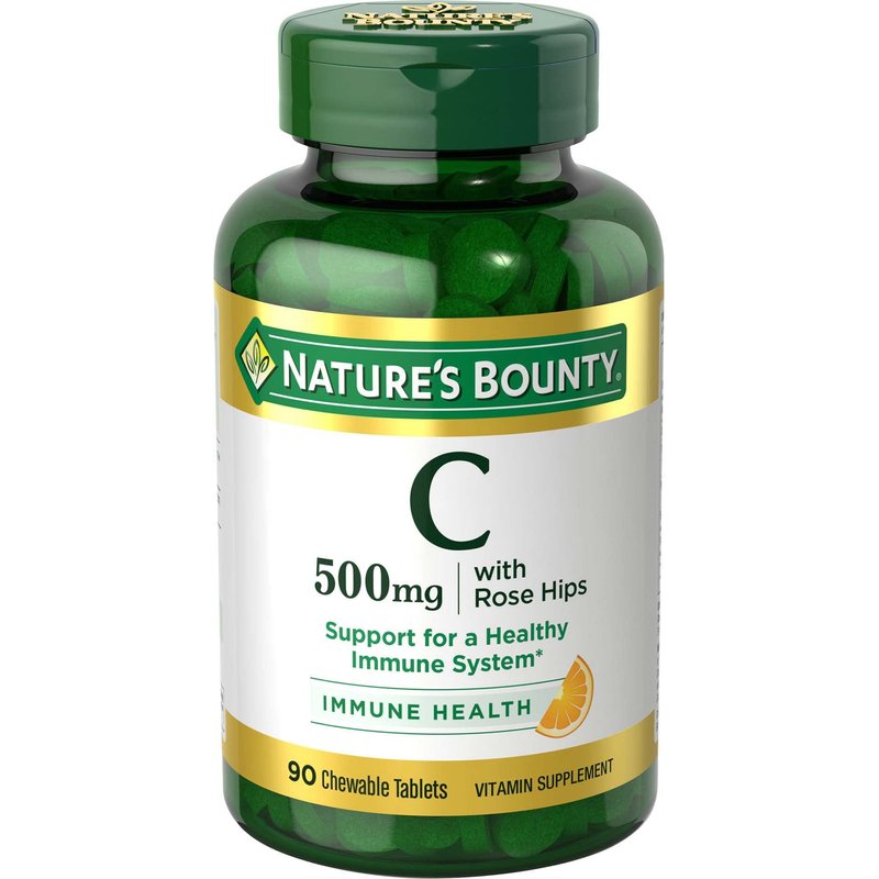 Nature's Bounty Vitamin C with Rose HIPS 500mg, 270 Chewable Tablets (3 X 90 Count Bottles)