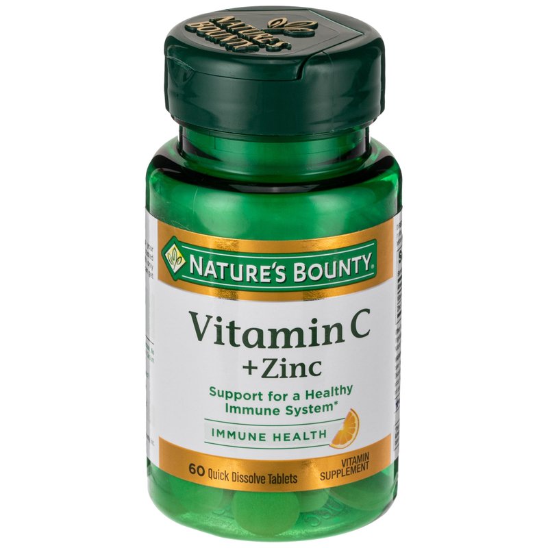 - IMMUNE SUPPORT: 60-count, 60mg Vitamin C Plus Zinc Tablets for immune support.* People reach for Vitamin C Plus Zinc by Nature's Bounty to help them get the immune system benefits of both essential nutrients.*