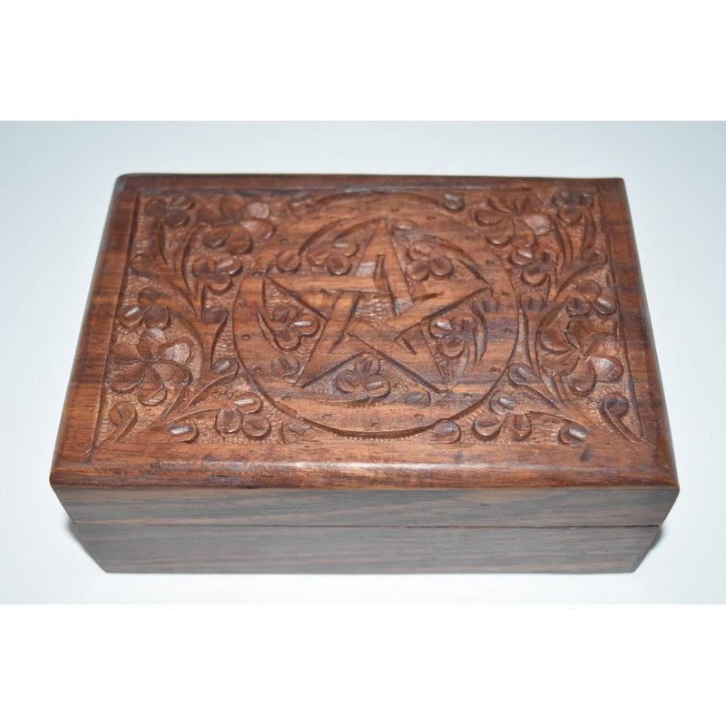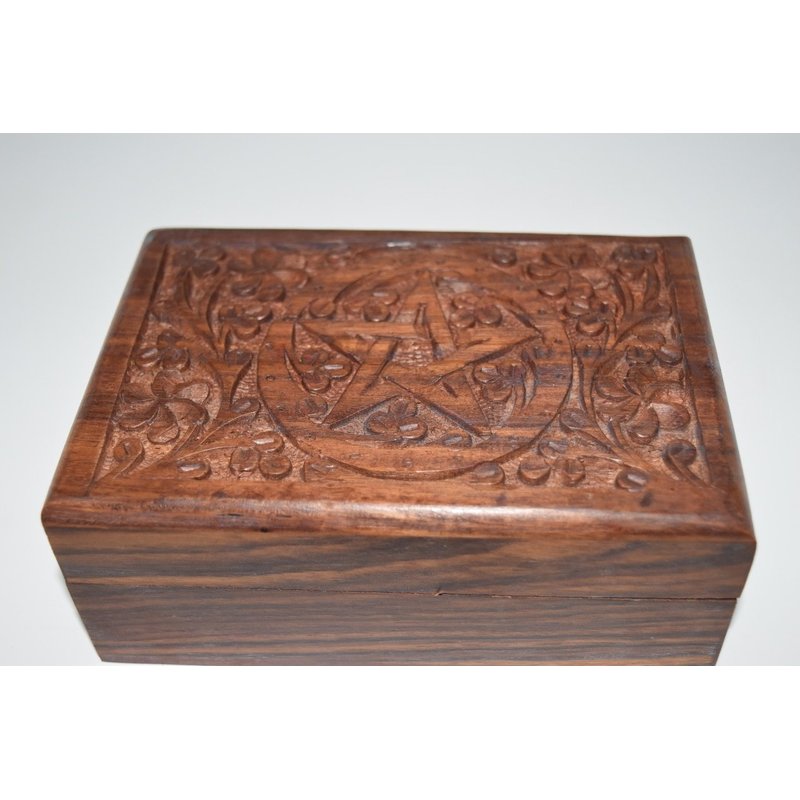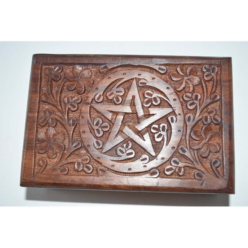Nature's Enlightenment Pentacle Carved Wooden Box #2- Tarot Cards, Crystals, Altar Supplies,