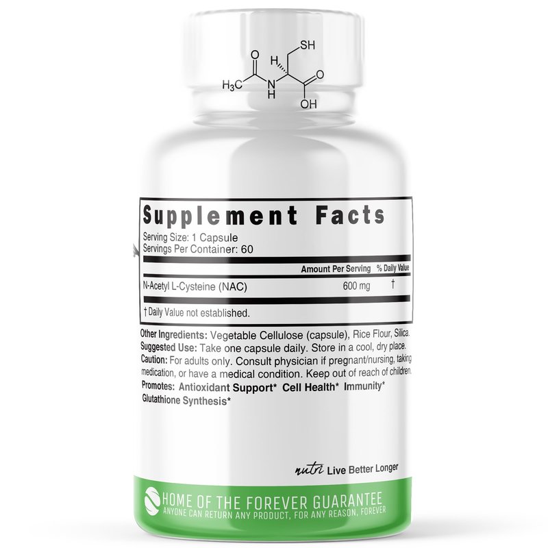 NAC (acetylcysteine) 600mg may be a great immune support and liver support product*. Cysteine helps to neutralize chemicals known as aldehydes, which are produced by air pollutants, drugs, and also by the liver as a byproduct of alcohol metabolism. NAC may also be beneficial in helping to reduce the negative side effects of acetaminophen, especially when used with alcohol, or when taken in large amounts. Acetaminophen poisoning is the most common cause of calls to poison control centers in the United States, which then causes severe damage to the liver. NAC helps to quickly replenish the liver glutathione stores and increases the oxygen delivery to the liver cells.*