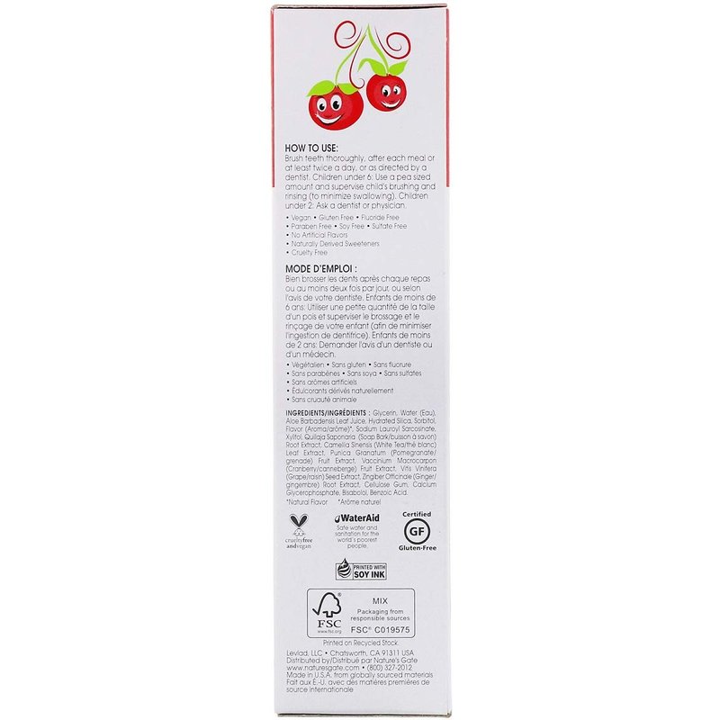 Pack of 3 tubes, Each tube is 5 ounces Kids will love brushing their teeth with this Cherry Flavored toothpaste Formulated to gently clean and polish even the tiniest teeth Vegan, Gluten-Free, Soy-Free, Fluoride-Free, Paraben-Free Sulfate-Free, No Artificial Flavors or Sweeteners, Cruelty-Free
