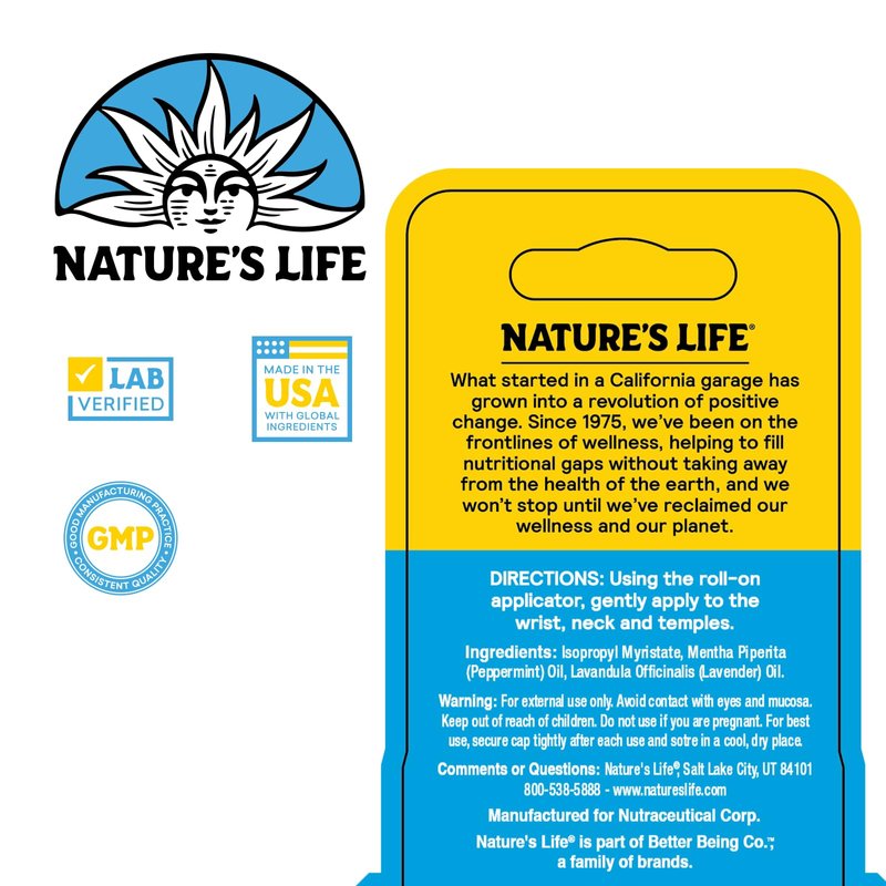 Nature's Life Soothing Roll On - Aromatherapy Oils for Head and Neck - Fast-Acting Stick Cools and Calms with Peppermint Oil and Lavender Oil, 60-Day Guarantee, Over 100 Applications, 0.1 oz