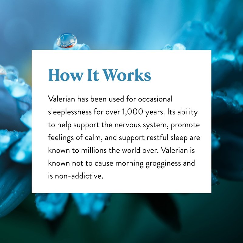 - GENTLE SLEEP SUPPORT - Valerian has been used for occasional sleeplessness for over 1,000 years as a powerful and natural supplement.