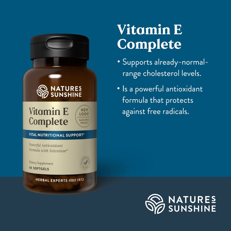 Nature's Sunshine Vitamin E Complete w/ Selenium, 60 Softgels |Powerful Antioxidant Supplement with Selenium and all Eight Molecules in the Vitamin E Family