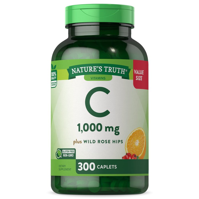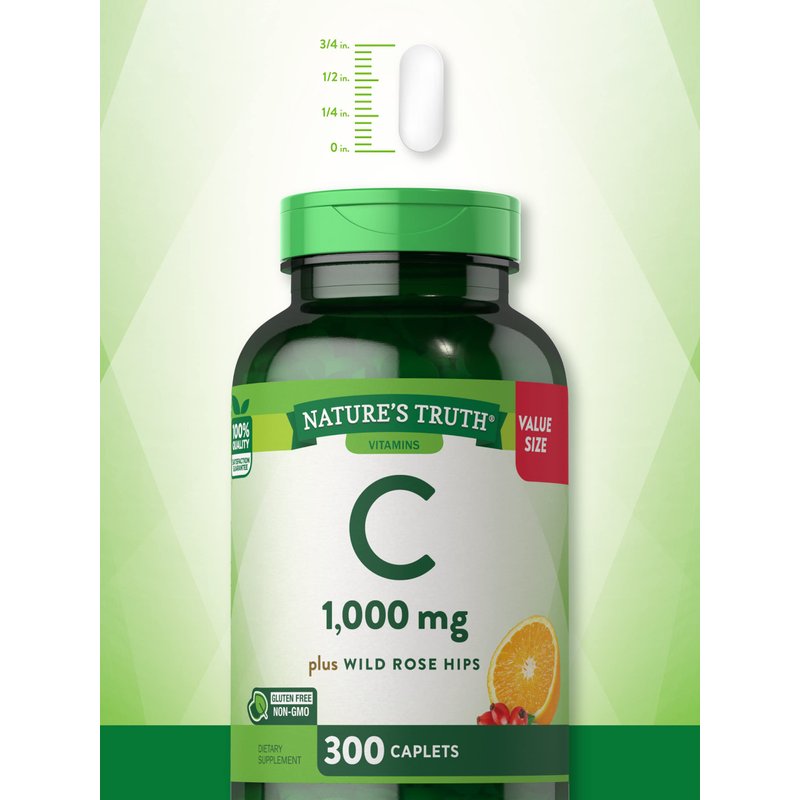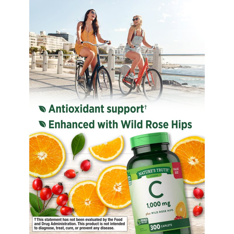 Nature's Truth Vitamin C 1000mg with Rose HIPS | 300 Caplets | Vegetarian, Non-GMO & Gluten Free Supplement
