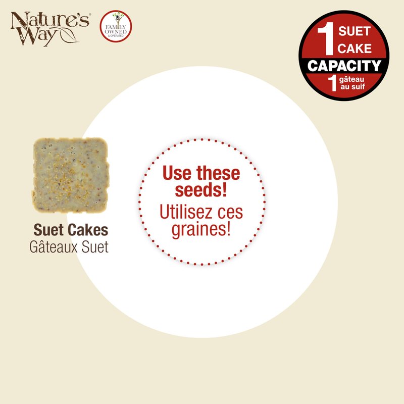 - EASY TO FILL-LESS SPILL: Simply lift the black lid to drop in a suet or seed cake, 1 cake capacity.