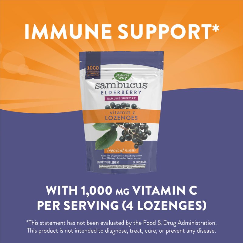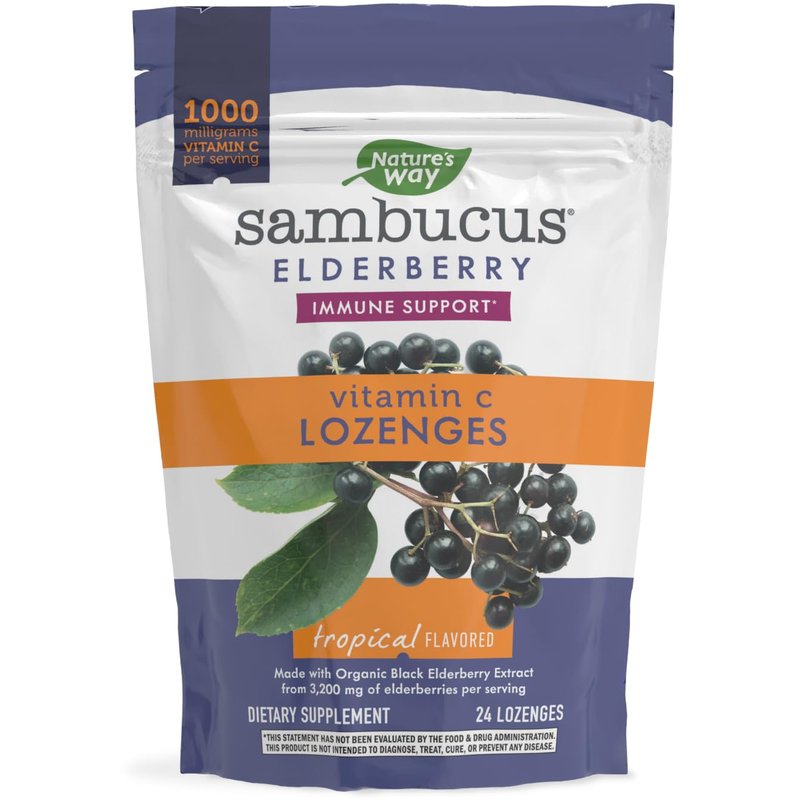 Nature’s Way Sambucus Elderberry Lozenges, 1000 mg Vitamin C Per Serving, Tropical Flavor, 24 Count