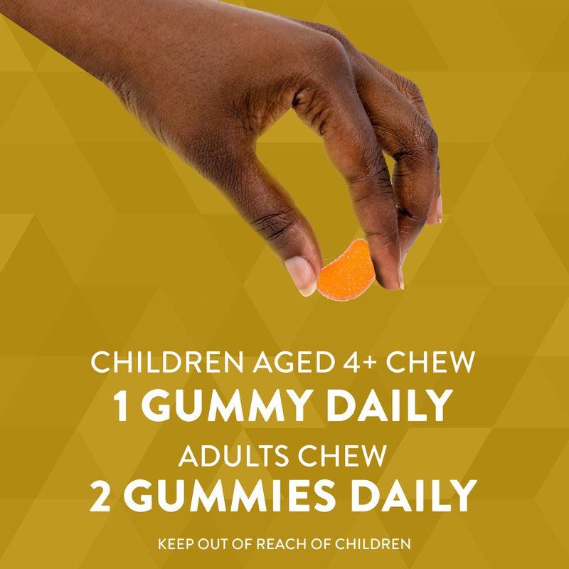 - Children 4 years and older, chew one gummy daily. Adults, chew two gummies daily. Sweet and tangy orange flavored gummies are deliciously beneficial, the perfect immune support for back to school or work, winter season, and all year long.*