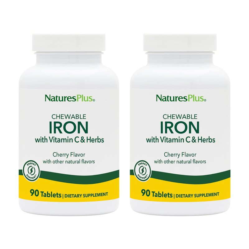 NaturesPlus Chewable Iron, Cherry - 90 Tablets, Pack of 2 - Supports Healthy Blood & Natural Energy Production - High-Potency Supplement with Vitamin C & Herbs - 180 Total Servings