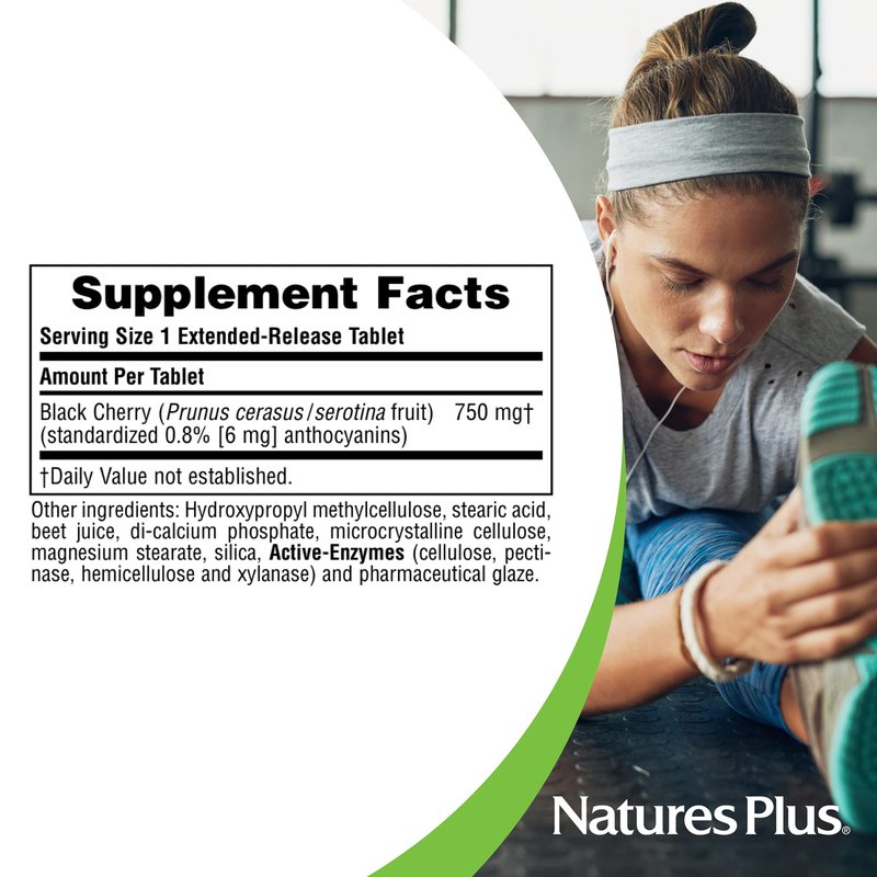 NaturesPlus Herbal Actives Black Cherry, Extended Release - 750 mg Anthocyanins, 30 Vegetarian Tablets - 30 Servings