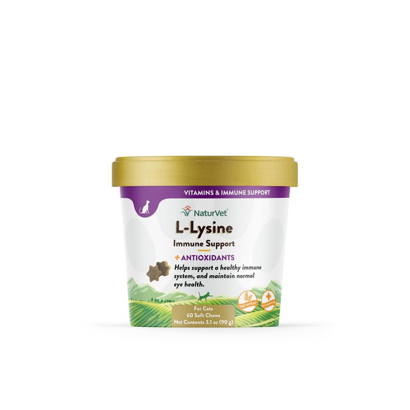 NaturVet L-Lysine Immune Support Plus Antioxidants Cat Supplement – Helps Support Eye Health, Immune System for Cats – Includes Amino Acids – 60 Ct. Soft Chews, 30-Day Supply