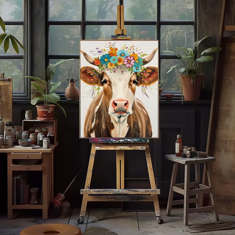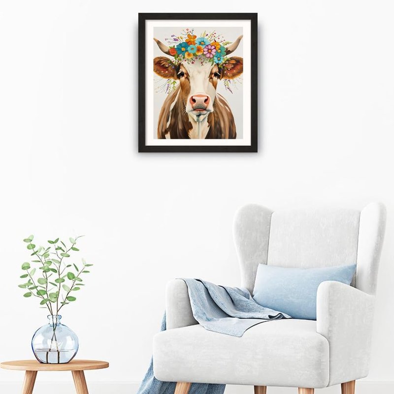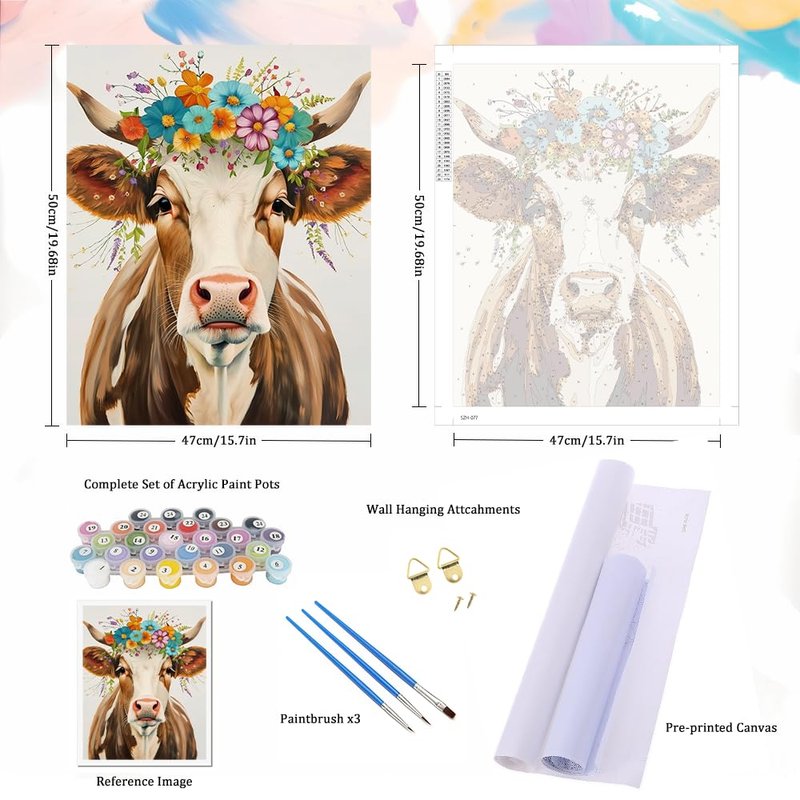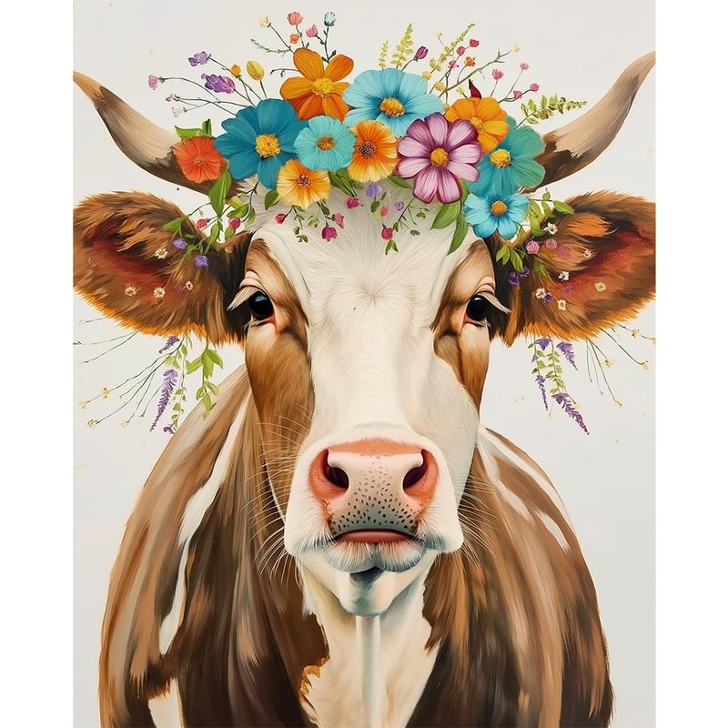 Natuyalo Paint by Numbers for Adults - DIY Adult Paint by Number Kits Painting on Canvas Cow and Flowers Painting by Numbers for Beginners, Animal Art Craft Kits for Adults (16x20 Inch)
