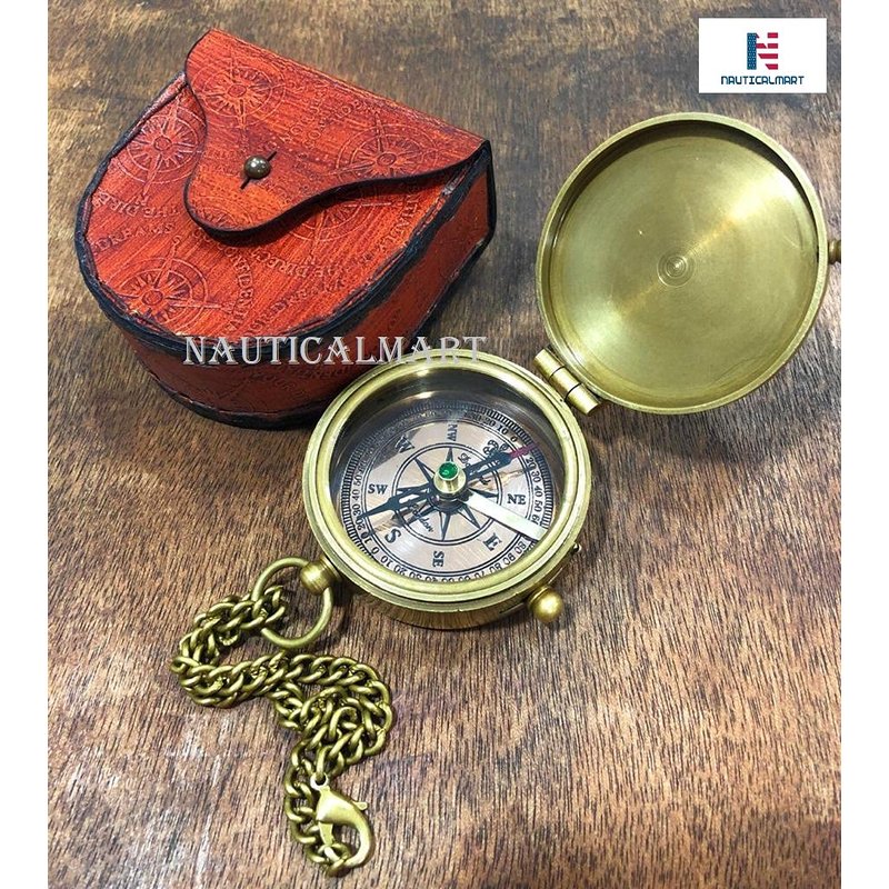 - UTILITY AND DURABILITY : Brass compass with chain and Leather Storage Case Each compass is individually crafted and carefully packaged. Its antique finish enhances your home décor, study room decoration, office desks and more. It gives a classy and elegant touch to your space. It is made of premium quality solid brass that makes it long lasting for years.