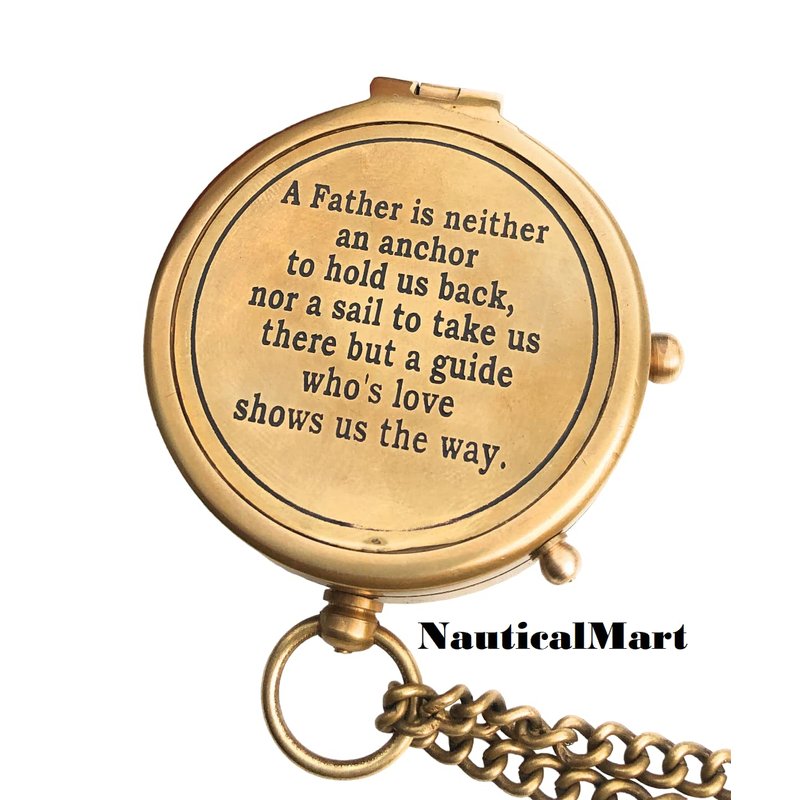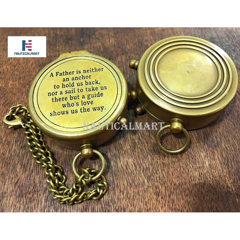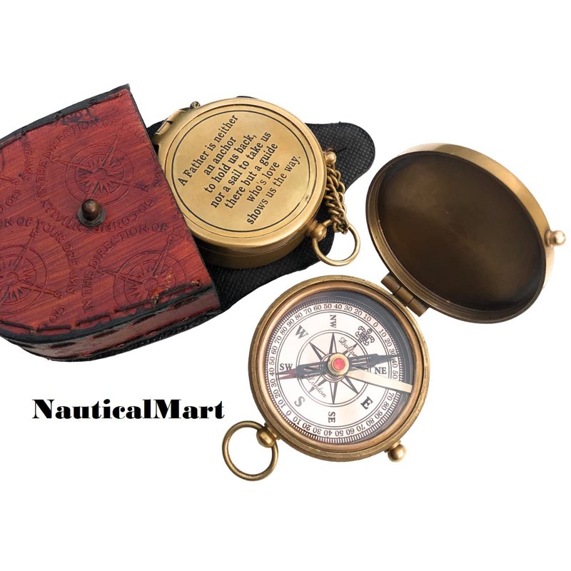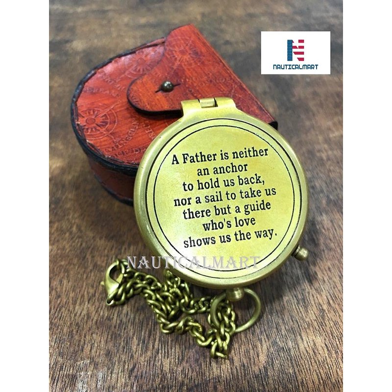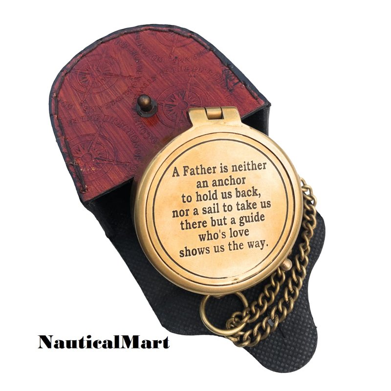 - PREMIUM QUALITY BRASS COMPASS: Premium quality handcrafted brass compass and leather case.A Father is Neither an Anchor Engraved Compass .The high-quality jewelled compass needle settles to north very quickly for well-timed and accurate reading. This Compass Provides Accurate directional assistance. this compass can also be used for Camping, Hiking or Adventure Traveling.