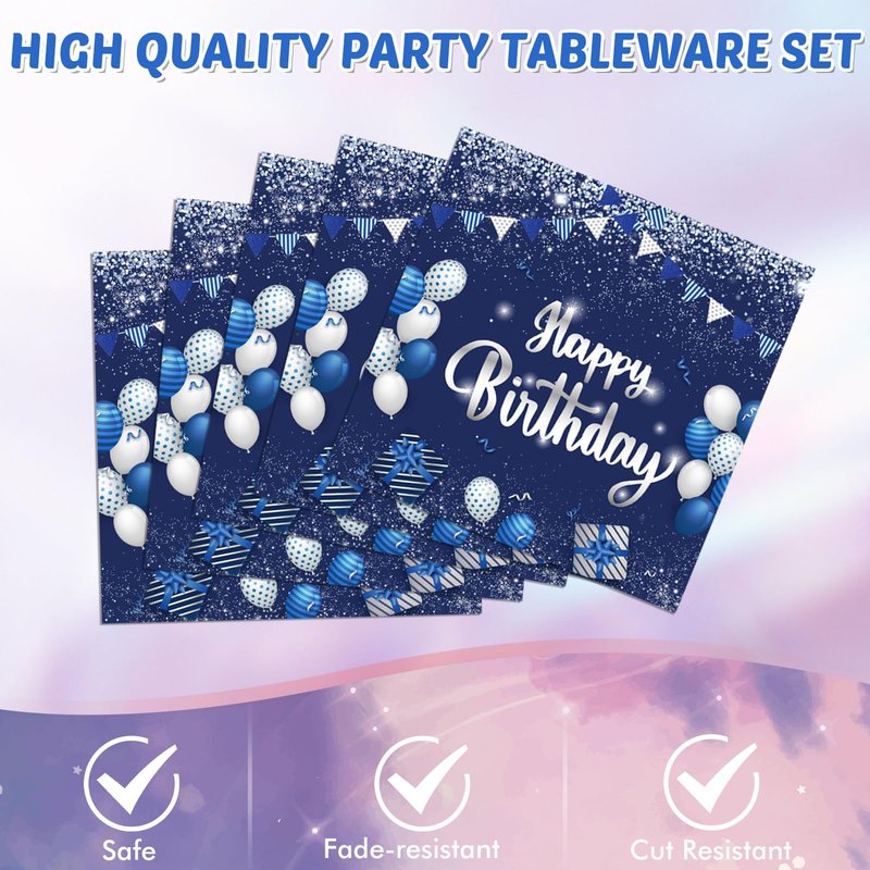 - Unique design: this navy blue party decorations are designed Blue Silver flag banner, balloons,ribbons,gifts boxes, shiny star on Blue Silver background, beautiful and vibrant, exquisite party tableware will make your birthday party more unforgettable
