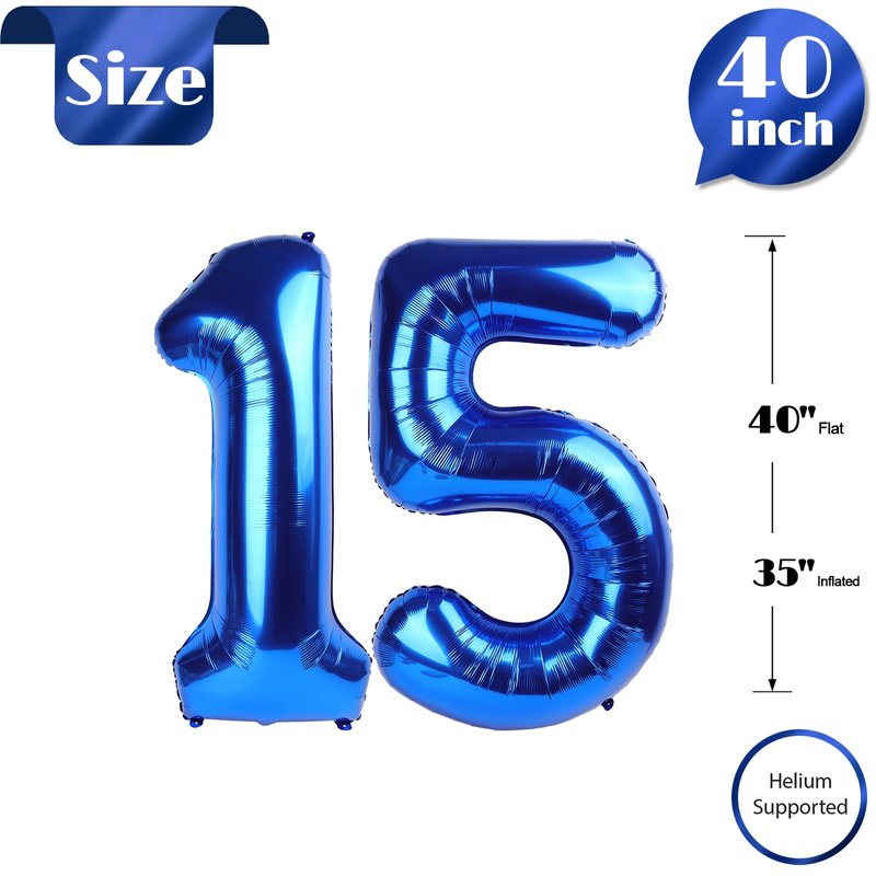- 【Helium or Natural Air Both Work Well for this Balloon】This 15 balloon is the ultimate party accessory for 15 years old birthday decorations for boy and man! You can inflate the 15 balloon number with helium for a floating effect or blow it up with natural air to hang it up as a decoration. Either way, this sturdy blue number balloon won't disappoint. It's perfect for long-lasting celebrations that will leave a lasting impression on your guests.