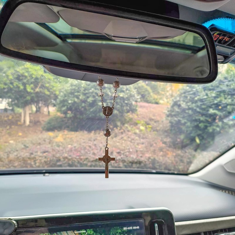 St Benedict car rosary with clear crystal round beads, Saint Benedict alloy medal and cross rearview rosary Auto car one decade rosary delivers peace and protection Spiritual protection rosary handmade derived from Holy land if not we will refund you immediately! So, don’t hesitate and check out our product today, take your chance to have a small part of Holy Land in your home.