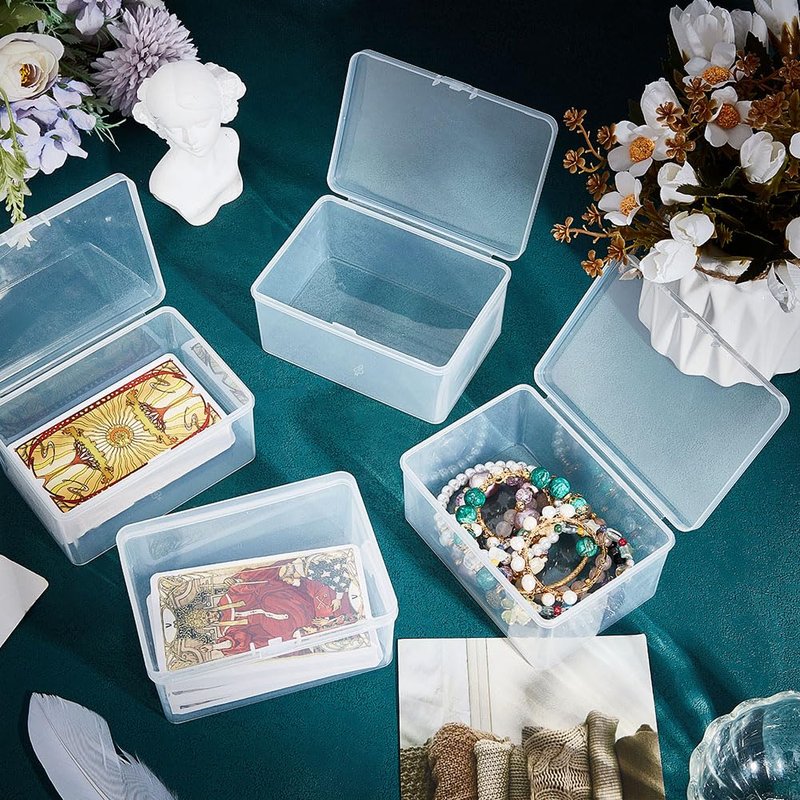 NBEADS 4 Pcs Mini Plastic Storage Containers Box, 3.94x2.6x1.52 Inch Plastic Card Case Holder Clear Rectangle Box with Lid Beads Storage Containers for Storage of Small Items Crafts Jewelry