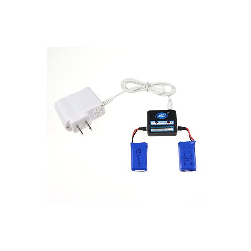 - This Package comes with: 1 White 110V AC Charger. 1 Black Charger Box . 2pcs 25C 3.7V 380mah Blue Batteries