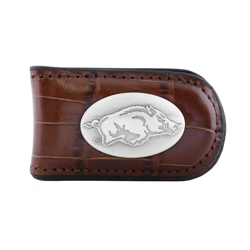 NCAA Arkansas Razorbacks Zep-Pro Crocodile Leather Magnet Concho Money Clip, Tan