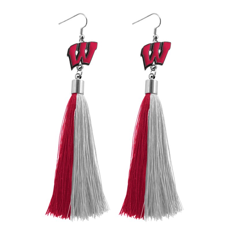 NCAA Wisconsin Badgers Womens Tassel Earringsncaa Tassel Earrings, Light Red, 3"