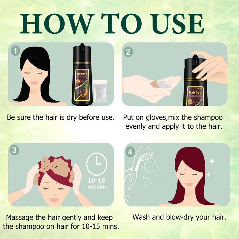 - 【3 IN 1 HAIR DYE SHAMPOO】 Different from traditional hair dye, our red hair dye shampoo can be used not only as a red hair dye but also as a hair shampoo and hair conditioner.