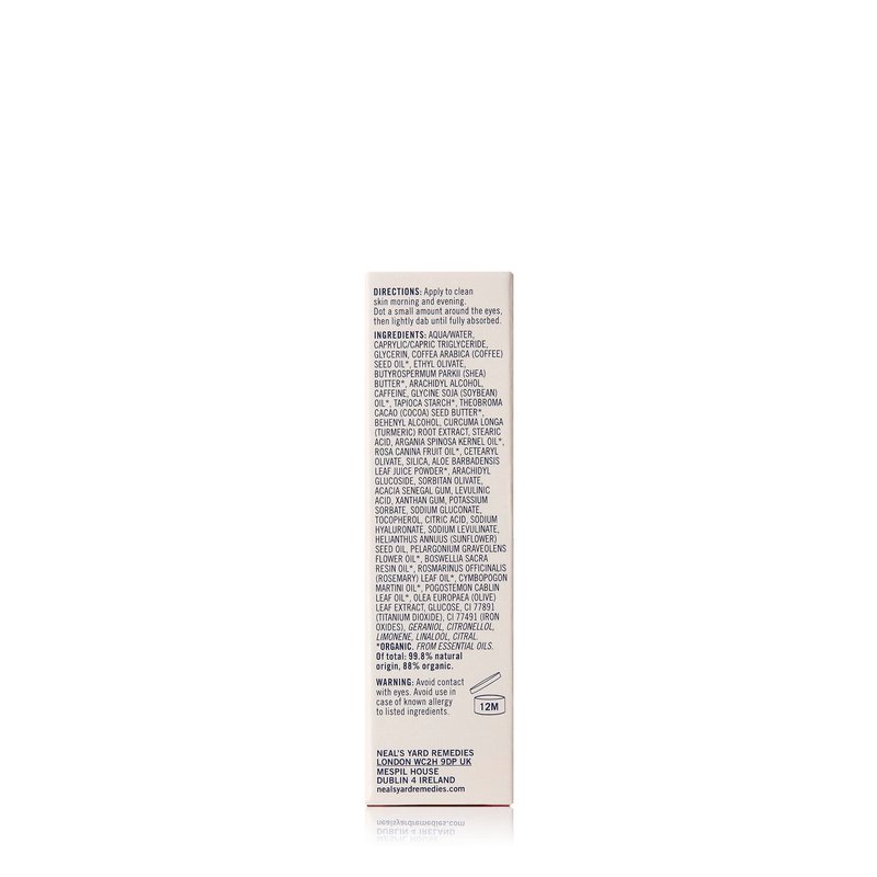 Revive and smooth your eye area with this light-reflecting, certified organic eye brightener with organic wild rosehip seed oil. Lightweight and fast absorbing, it visibly improves radiance around the eye area instantly. With hyaluronic acid to instantly smooth and plump, and light-reflecting mineral pigments to improve the appearance of dark circles. Soothing green tea caffeine works to energise and revitalise skin, reducing dark circles and puffiness for a brighter, revitalised eye area. Enhances radiance enjoy radiant skin with the glow-giving properties of organic wild rosehip seed oil. Smooths and plumps enriched with hyaluronic acid to lock in moisture and instantly smooth and plump the skin. Targets dark circles and puffiness light-reflecting mineral pigments improve the appearance of dark circles while soothing green tea caffeine energises and revitalises the eye area, reducing dark circles and puffiness over time. Proof organic works instantly* 83% agree their eye area looks brighter 89% agree their skin looks smoother after two weeks* 74% agree their dark circles are visibly improved 83% agree their eye area is revitalised dermatologically tested ophthalmologically tested *Based on a consumer Trial with 119 women.