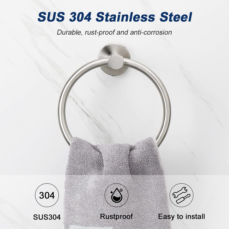 - 【MODERN STYLE】This bathroom towel ring with elegant and stylish look adds a unique and luxury feeling to your home. Brushed nickel appearance and round design make your home simple and contemporary.