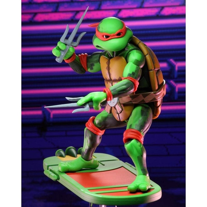- Raphael comes with signature weapon and hoverboard with display stand that can be used for even more poses