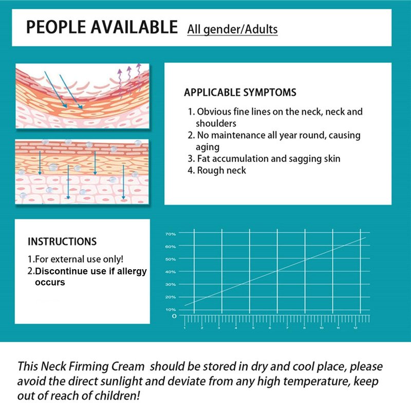 Our neck firming cream for lifting and tightening neck and sagging neck, firming and repairing the neck wrinkles. Long term use can make a person's neck look younger