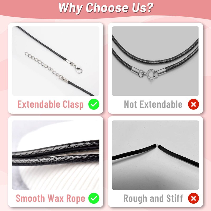 - GREAT QUALITY WAXED CORD NECKLACE – These necklace string for jewelry making are made of waxed cotton that are durable and lightweight, smooth and soft surface with delicate jewelry clasps. Perfect for adding pendants, charms, beads, stones and so on