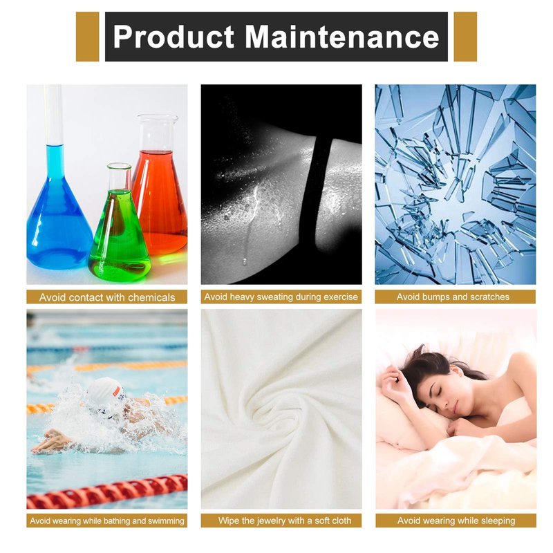 Warm Notice: Do not wear jewelry during doing exercise and bathing. When not wearing, please wipe clean and put it into a jewelry box to save.