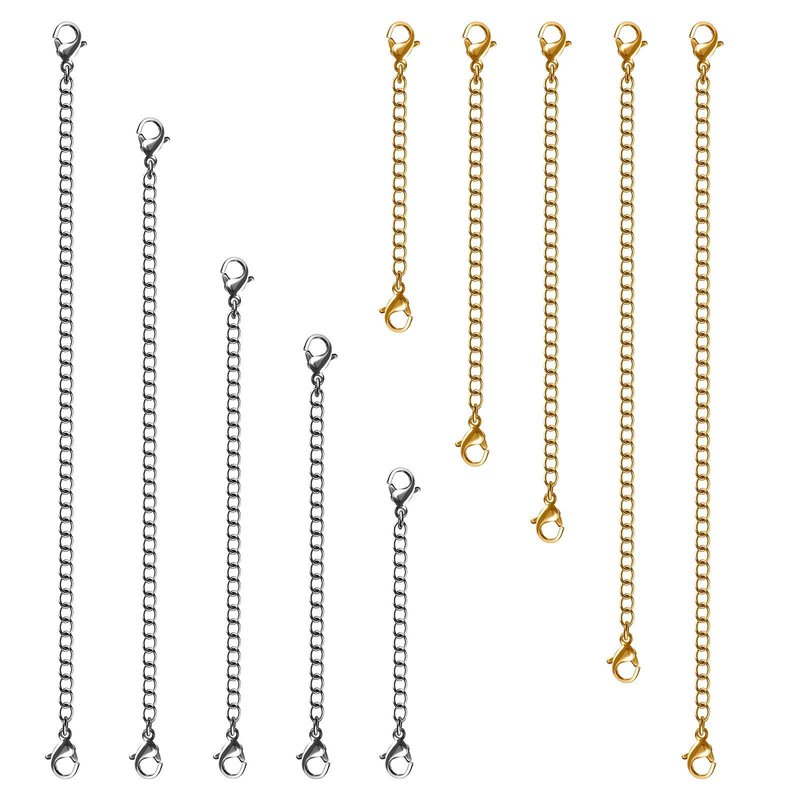 Necklace Extenders, 10Pcs Stainless Steel Gold Silver Necklace Bracelet Anklet Extension Chains with Lobster Clasps and Closures for Jewelry Making