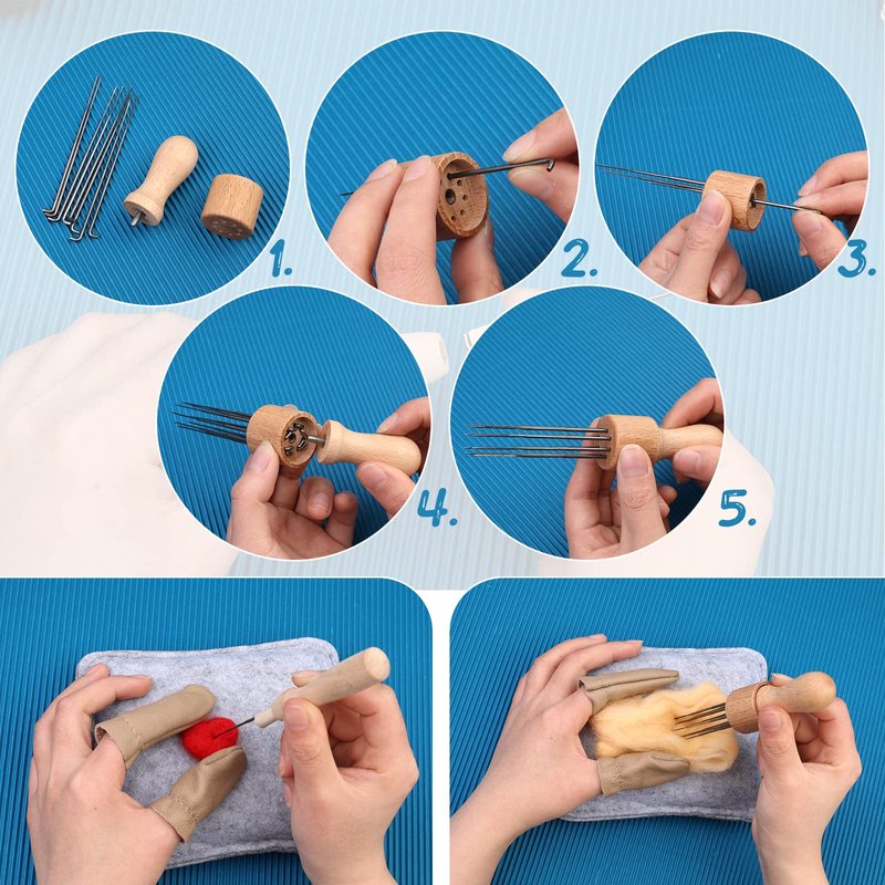 - 🐑 More Felting Needles: Our felting needles with four different types of needles in this needle felting starter kit, a total of 24pcs needles. Whether it is a contour needle, a detail needle, or the ordinary felt needles are all in this. Which are packed in 3 different bottles and will not be confused. We also matched a wooden felting handle for you to make you more comfortable in needle felting.