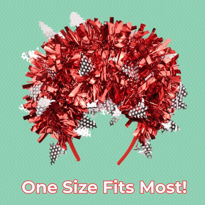 Needzo Red Christmas Tinsel Headband, Festive Xmas Hair Accessory, Ugly Sweater Party Supplies, One Size Fits Most, 11 x 9.75 Inches