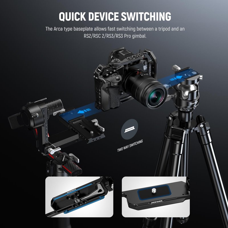 The Arca type baseplate enables you to quickly transfer the camera from DJI RS 2 RSC 2 RS 3 RS 3 Pro handheld gimbals to a tripod.